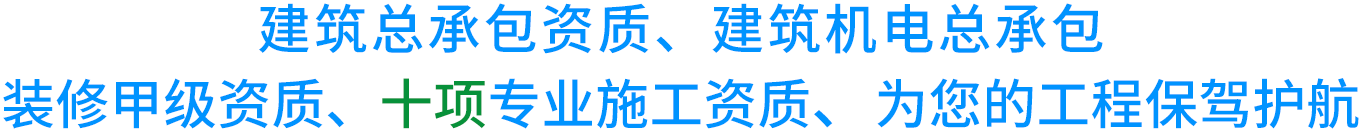 公司拥有国家建设主管部门颁发的建筑安装工程施工总承包、建筑机电安装工程专业总承包、建筑机电安装工程专业承包叁级、建筑装修装饰工程专业承包贰级、电子与智能化专业承包叁级、环保工程专业承包叁级、安全生产许可证、环境管理体系认证、质量管理体系认证、健康职业管理体系认证。